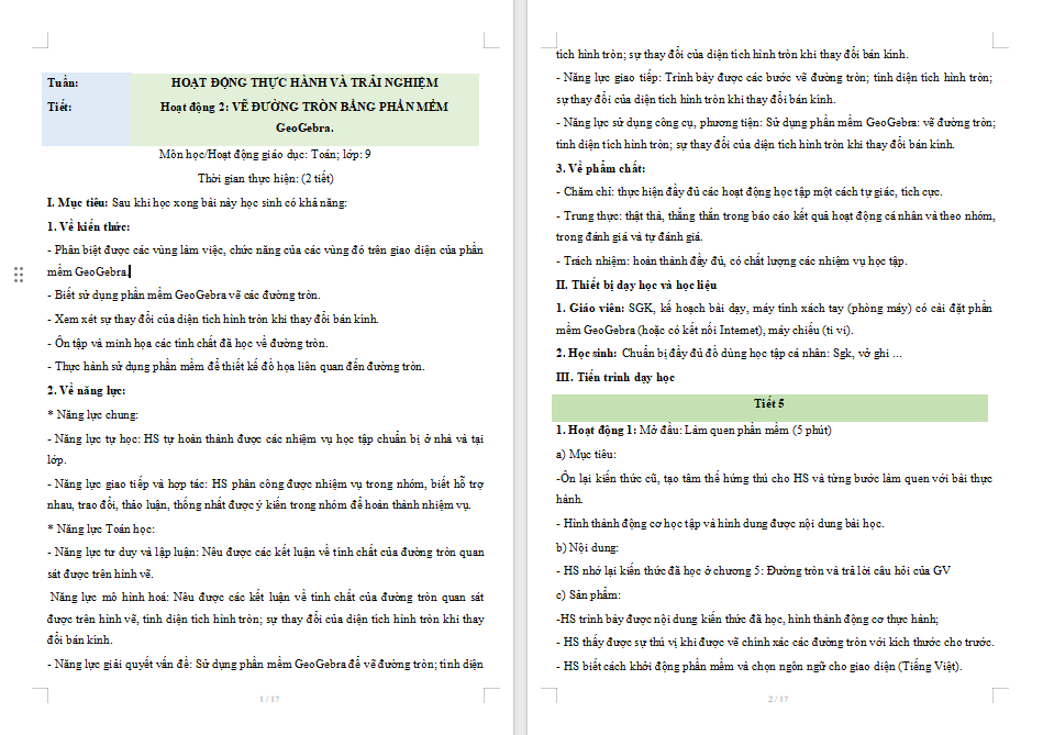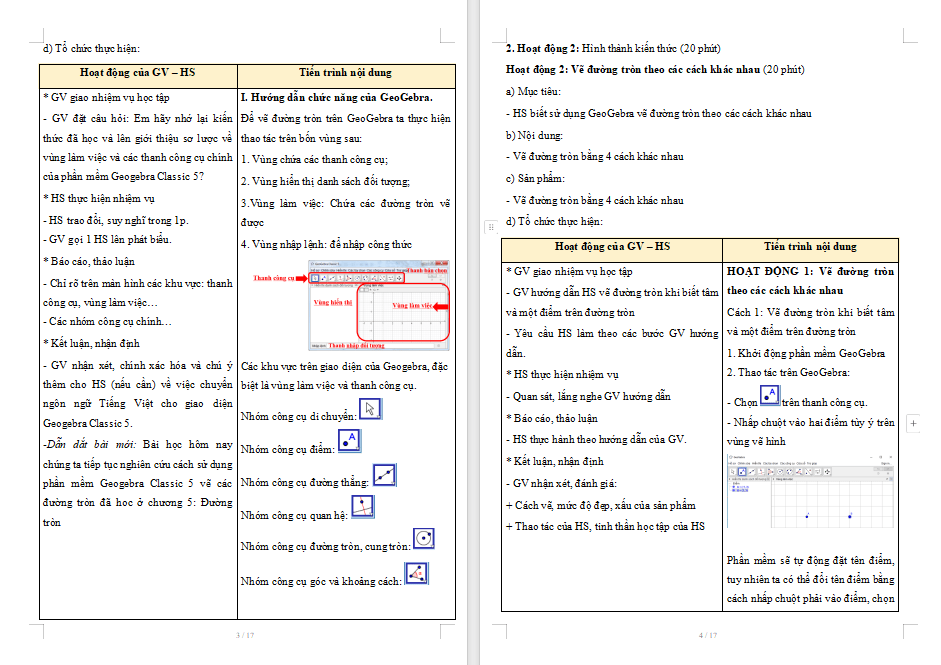 Giáo án Toán 9 Hoạt động 2: Vẽ đường tròn bằng phần mềm GeoGebra là tài liệu rất hữu ích được biên soạn cả dạng Word + PPT. Qua đó giúp quý thầy cô tiết kiệm thời gian làm bài giảng điện tử cho riêng mình.