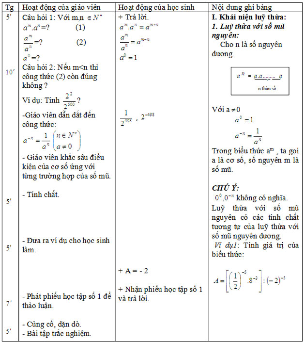 - Học sinh: SGK và kiến thức về luỹ thừa đã học ở cấp 2.