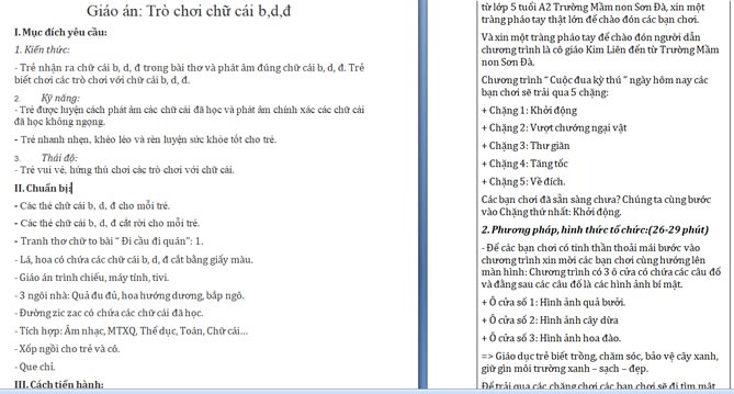 Ngoài File PowerPoint, giáo án trò chơi chữ cái b, d, đ còn có file Word có thể tải về và chỉnh sửa, mời các cô tham khảo.