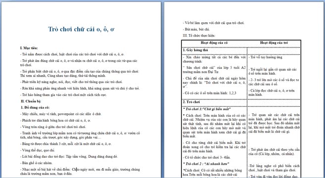 Ngoài File PowerPoint, giáo án trò chơi chữ cái o, ô, ơ còn có file Word có thể tải về và chỉnh sửa, mời các cô tham khảo.