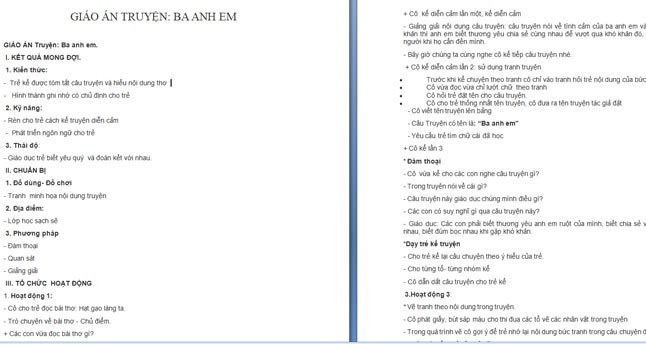 Ngoài File PowerPoint, giáo án truyện “Ba Anh Em” còn có file Word có thể tải về và chỉnh sửa, mời các cô tham khảo.