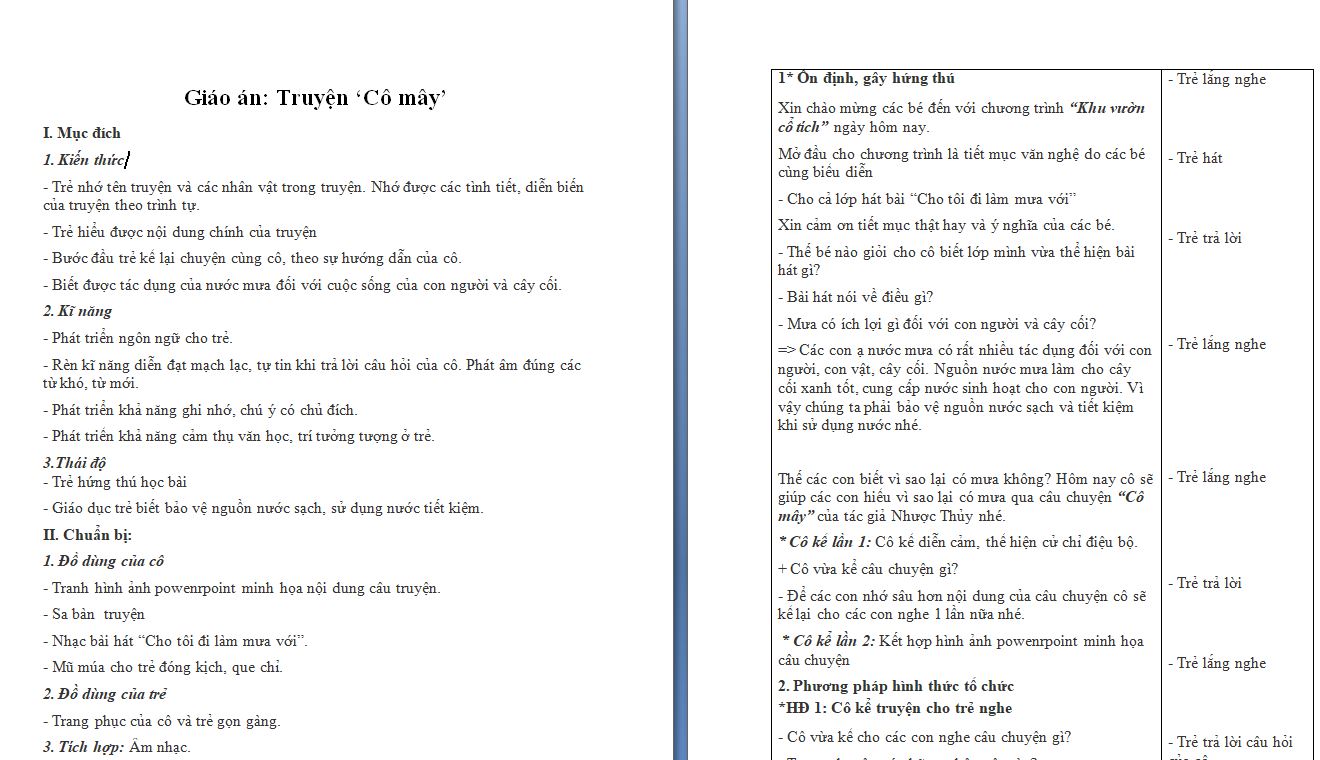 Giáo án: Truyện ‘Cô mây’
