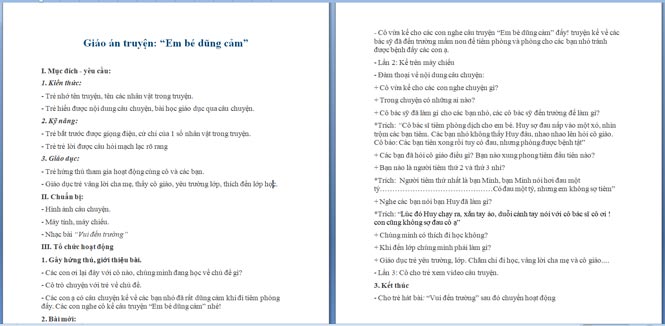 Ngoài File PowerPoint, giáo án truyện 'Em bé dũng cảm' còn có file Word có thể tải về và chỉnh sửa, mời các cô tham khảo.