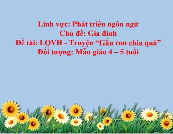 Giáo án lớp chồi: Truyện ‘Gấu con chia quà’ (PPT + Word)