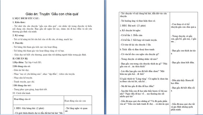 Giáo án: Truyện ‘Gấu con chia quà’