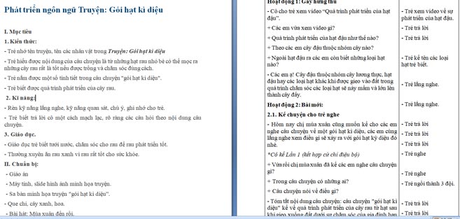 Ngoài File PowerPoint, giáo án truyện “Gói hạt kỳ diệu” còn có file Word có thể tải về và chỉnh sửa, mời các cô tham khảo.