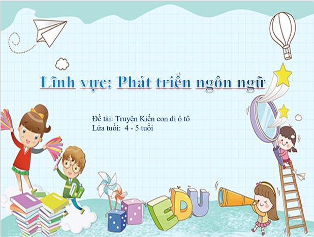 Giáo án lớp chồi: Truyện ‘Kiến con đi xe ô tô’ (PPT + Word)