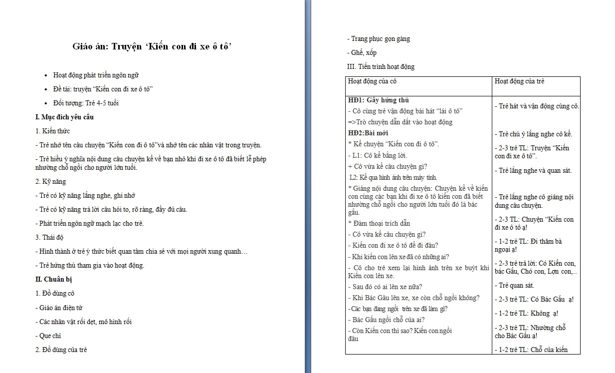 Giáo án Word: Truyện ‘Kiến con đi xe ô tô’