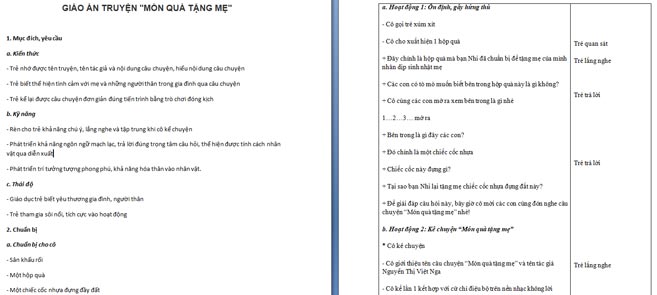 Ngoài File PowerPoint, giáo án truyện “Quà tặng mẹ” còn có file Word có thể tải về và chỉnh sửa, mời các cô tham khảo.