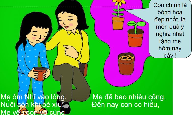 Mời các bạn nhấn nút Tải về bên dưới để lấy trọn bộ File PowerPoint + Word của giáo án truyện “Quà tặng mẹ”.