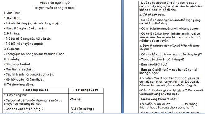 Ngoài File PowerPoint, giáo án truyện “Nếu không đi học” còn có file Word có thể tải về và chỉnh sửa, mời các cô tham khảo.