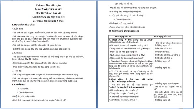 Ngoài File PowerPoint, giáo án dạy truyện “Nhổ củ cải” còn có file Word có thể tải về và chỉnh sửa, mời các cô tham khảo.