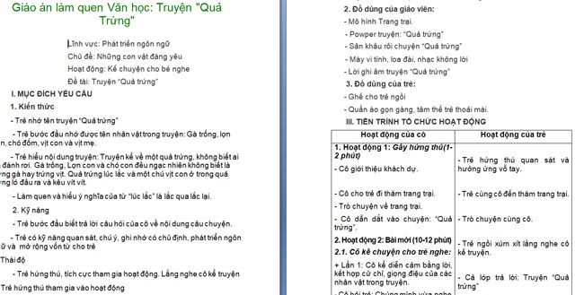 Ngoài File PowerPoint, giáo án truyện "Quả Trứng" còn có file Word có thể tải về và chỉnh sửa, mời các cô tham khảo.