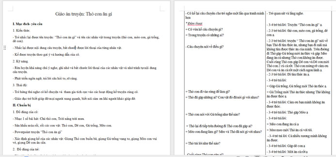Ngoài File PowerPoint, giáo án dạy truyện “Thỏ con ăn gì?” còn có file Word có thể tải về và chỉnh sửa, mời các cô tham khảo.