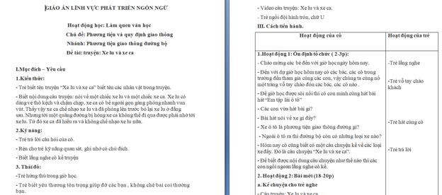 Ngoài File PowerPoint, giáo án truyện ‘Xe lu và xe ca’ còn có file Word có thể tải về và chỉnh sửa, mời các cô tham khảo.