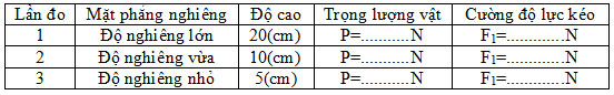 - Làm TN kiểm tra độ lớn của lực kéo phụ thuộc độ nghiêng của mặt phẳng nghiêng.