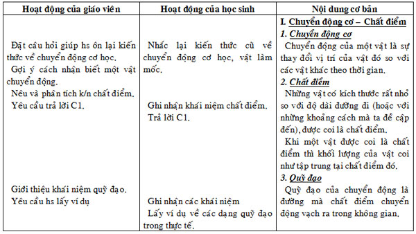 Hoạt động 1 (15 phút): Tìm hiểu khái niệm về chuyển động cơ, chất điểm.