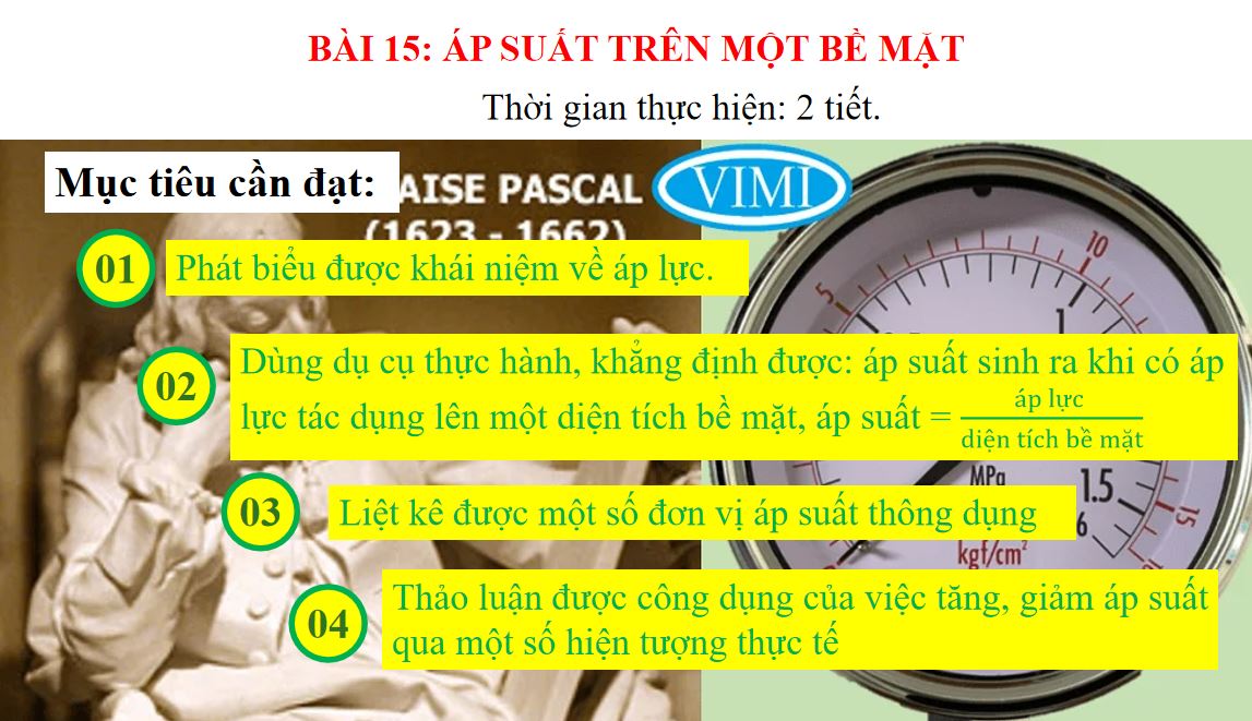 Giáo án PowerPoint Vật lý 8 KNTT bài 15: Áp suất trên một bề mặt