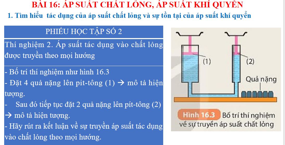 Giáo án Vật lý 8 bài 16: Áp suất chất lỏng, áp suất khí quyển (Mẫu 2)