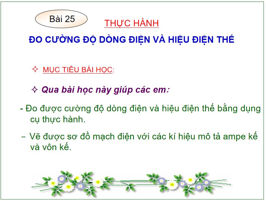 Giáo án PowerPoint Vật lý 8 KNTT bài 25: Thực hành đo cường độ dòng điện và hiệu điện thế