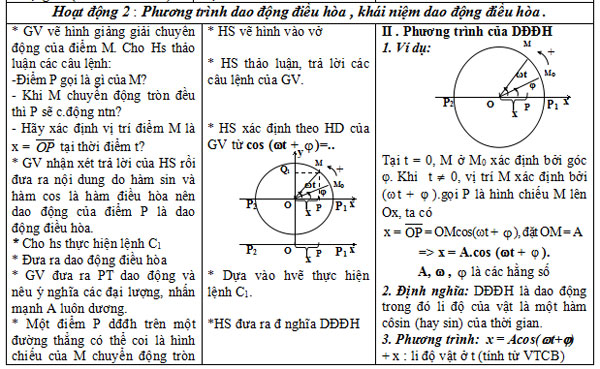 - Nêu được: Định nghĩa dao độ điều hòa; Li độ, biên độ, tần số, chu kì, pha, pha ban đầu là gì.