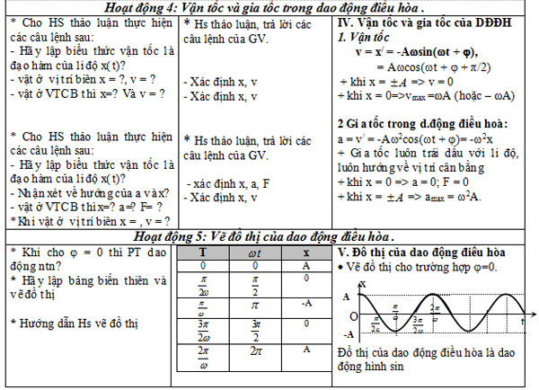 - Viết được: Phương trình của dao động điều hòa và giải thích được các đại lượng trong PT; Công thức liện hệ giữa tần số góc, chu kì và tần số; Công thức vận tốc và gia tốc của dao động điều hòa.