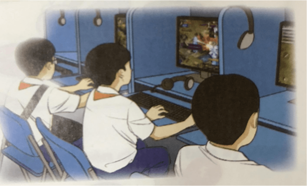 Các bạn đang chơi game. Việc làm của các bạn đang lãng phí thời gian. Vì game là 1 trò chơi tiêu khiển chỉ để giải trí lúc rảnh, vậy mà các bạn học sinh trong hình lại bỏ quá nhiều thời gian để chơi.