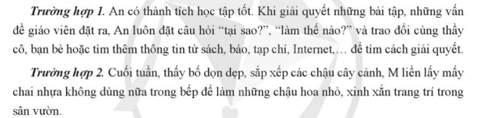 Sự cần cù, sáng tạo trong học tập của bạn An được thể hiện ở việc: khi giải quyết những bài tập, những vấn đề giáo viên đặt ra, An luôn đặt câu hỏi “tại sao?”, “làm thế nào?" và trao đổi cùng thầy cô, bạn bè hoặc tìm thêm thông tin từ sách, báo, tạp chí, Internet,... để tìm cách giải quyết.