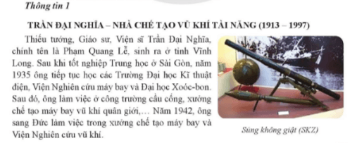 - Thông tin 1: sự cần cù, sáng tạo trong lao động của Giáo sư Trần Đại Nghĩa: