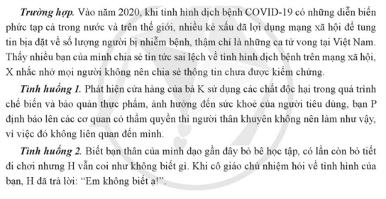 Luyện tập 3 trang 23 GDCD 8: Em hãy đọc các tình huống dưới đây và trả lời câu hỏi
