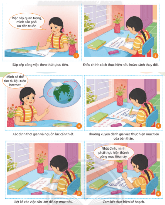 Sắp xếp các hình ảnh theo trình tự các bước lập kế hoạch thực hiện mục tiêu cá nhân:
