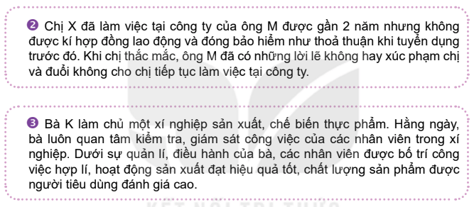 Luyện tập 3 trang 68 GDCD 8: Hãy chỉ ra những vi phạm của người lao động, người sử dụng lao động theo quy định của Bộ luật Lao động năm 2019 trong những trường hợp dưới đây: