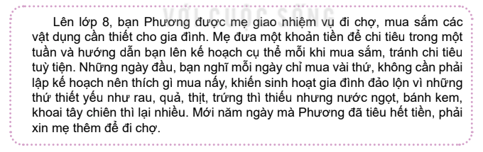 Khám phá trang 48 GDCD 8: b) Em hãy dự liệu những khó khăn có thể xảy ra nếu Phương tiếp tục chi tiêu tùy tiện như vậy.