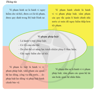 Khám phá trang 52 GDCD 9: Căn cứ vào thông tin, em hãy cho biết thế nào là vi phạm pháp luật. Có những loại vi phạm pháp luật nào? Xác định dấu hiệu vi phạm pháp luật của từng loại vi phạm pháp luật.
