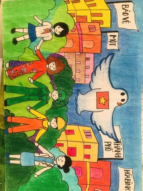 (*) Sản phẩm tham khảo 3: Tranh vẽ “Bảo vệ một thành phố hòa bình”