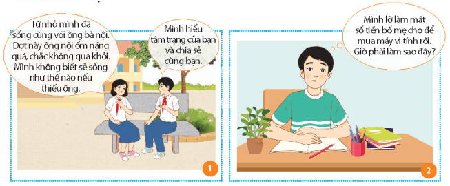 + Nên chia sẻ, tâm sự cùng người thân, bạn bè. Hoặc có thể bộc lộ tình cảm của mình với ông nội thông qua các hoạt động như: vẽ tranh, viết nhật kí, sáng tác thơ, truyện ngắn,…