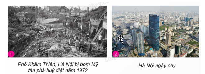 a. Từ thông tin và các hình ảnh trên, em hãy cho biết cuộc chiến tranh xâm lược của đế quốc Mỹ đã gây ra hậu quả gì với Thủ đô Hà Nội? Cuộc sống của người dân và sự phát triển của Hà Nội trong chiến tranh và trong hòa bình có sự khác nhau như thế nào?