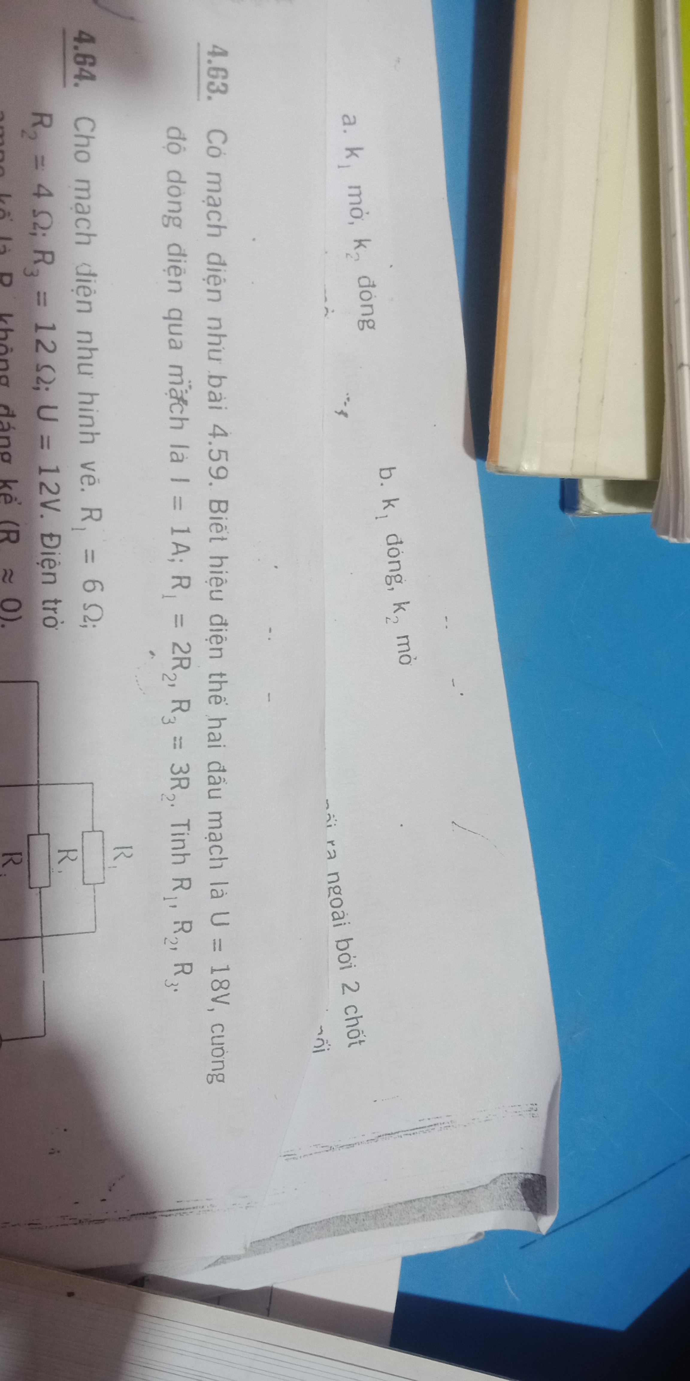 Hiệu điện thế hai đầu mạch là U = 18V, cường độ điện qua mạch là I = 1A