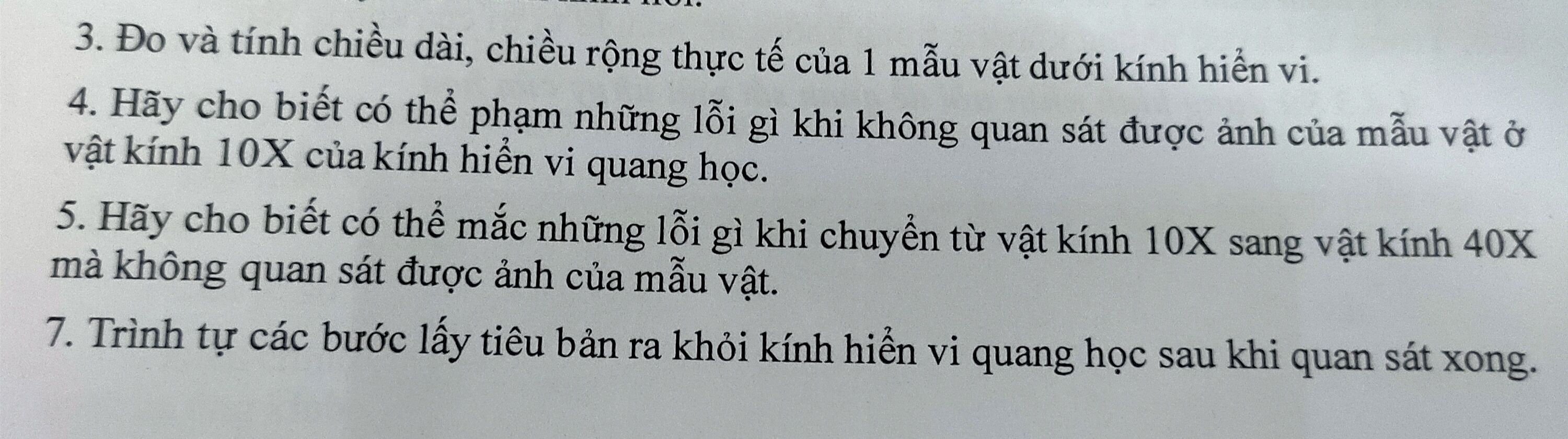 Đo và tính chiều dài, chiều rộng thực tế của một mẫu vật dưới kính hiển vi