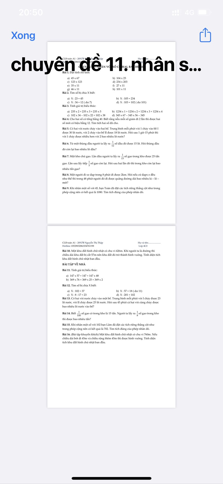 Có hai vòi nước chảy vào một bể. Trung bình mỗi phút vòi 1 chạy được 23l nước, vòi 2 chảy được 25l nước. Hỏi sau 45 phút cả hai vòi cùng chảy được bao nhiêu lít nước vào bể?