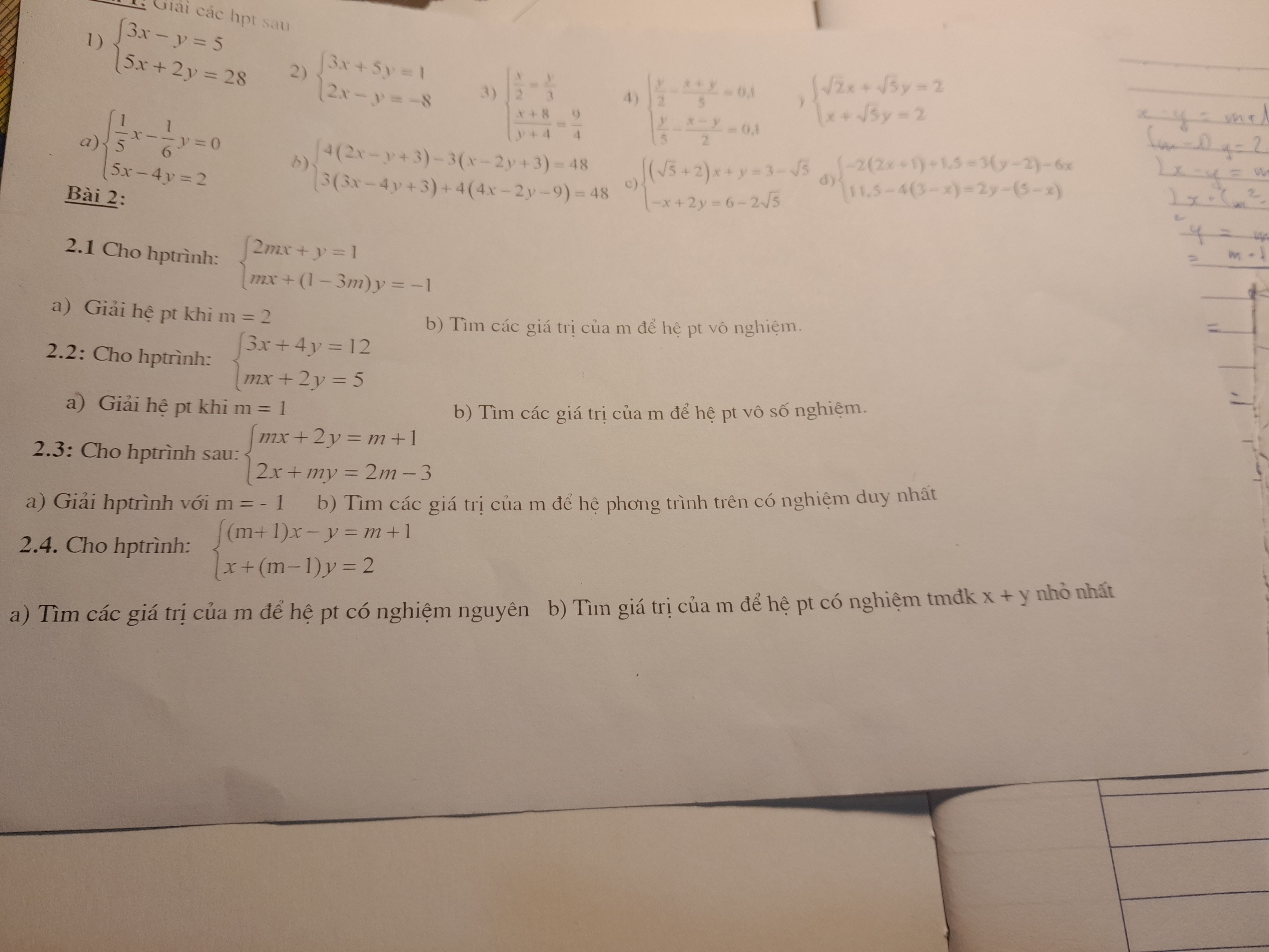 Cho hệ phương trình, tìm tất cả giá trị của m để phương trình có nghiệm nguyên