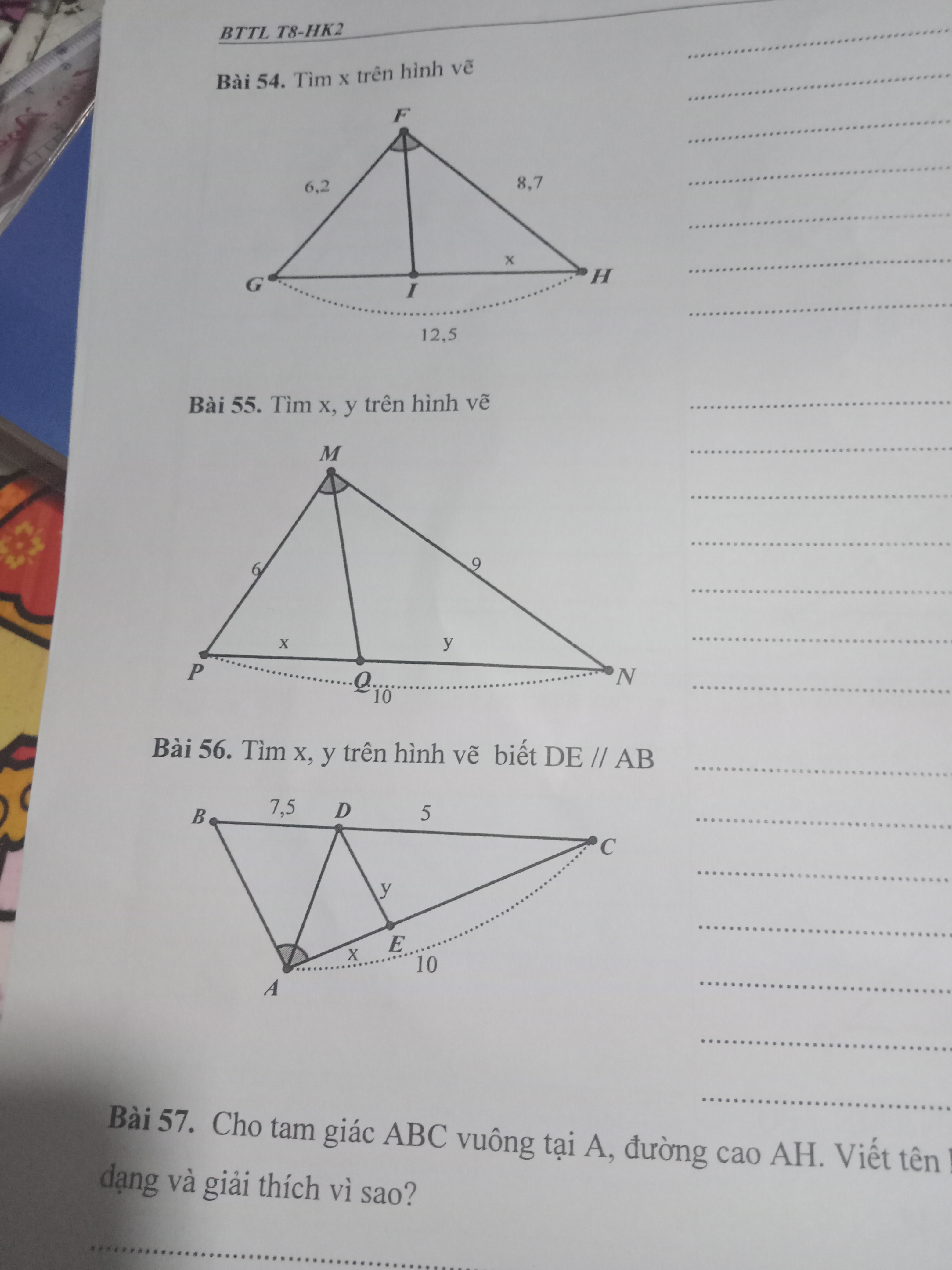 Cho tam giác FGH có FG = 6,2; FH = 8,7; FI là tia phân giác góc GFH