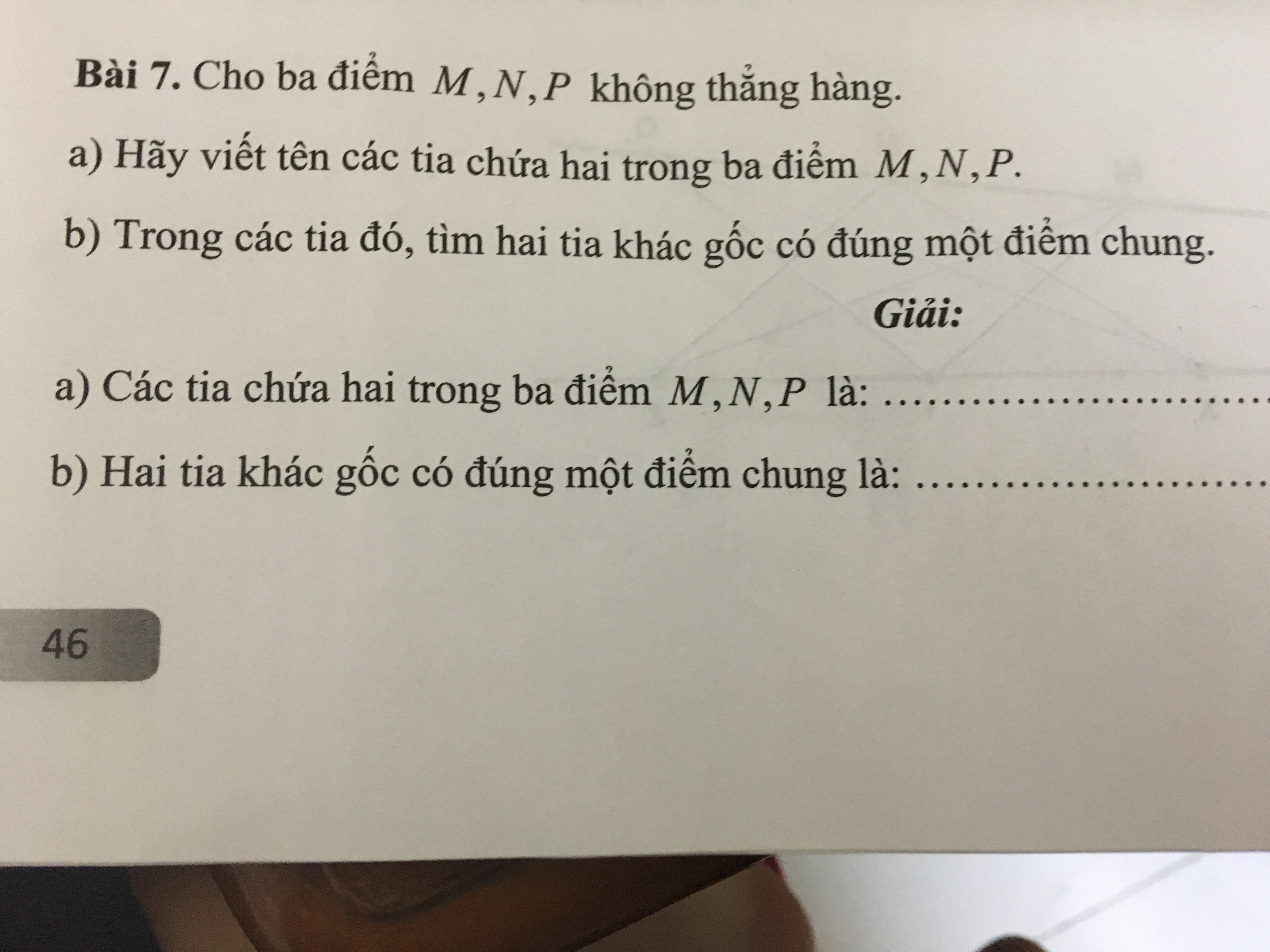 Hãy viết tên các tia chứa hai trong ba điểm M, N, P