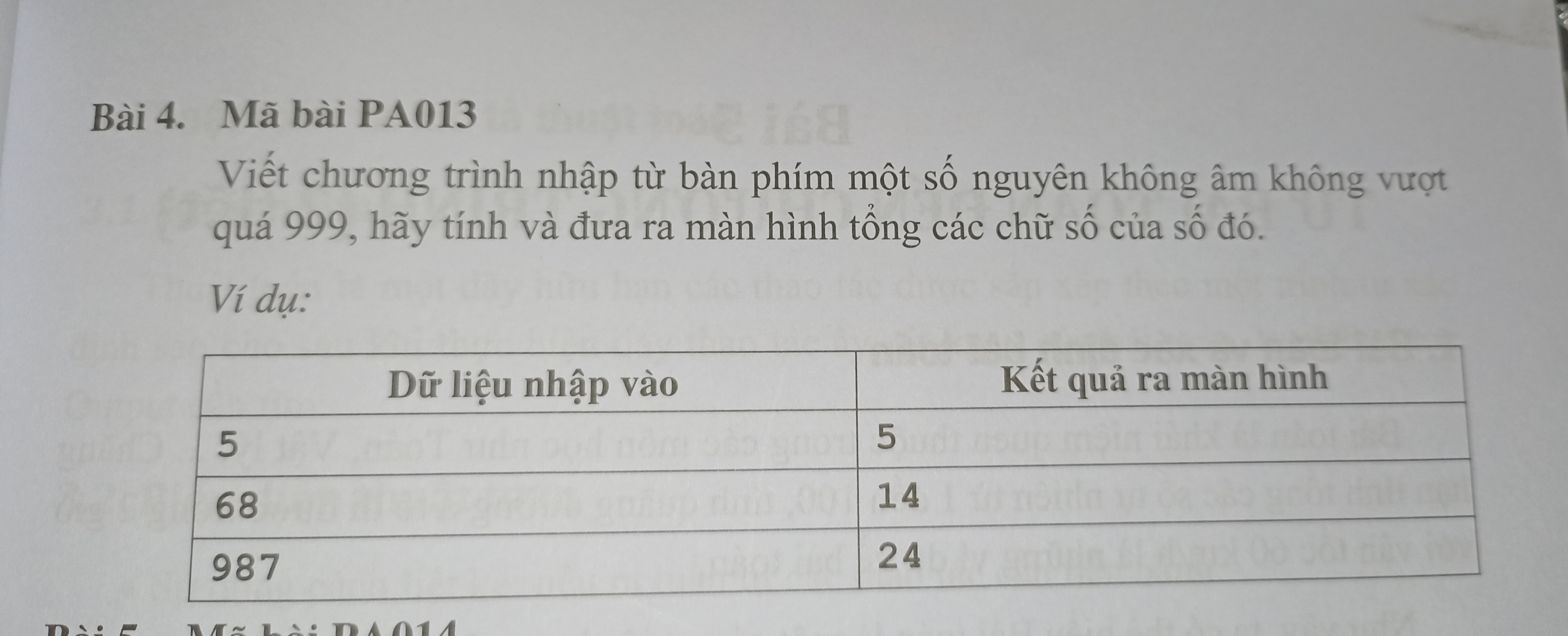 Viết phương trình nhập từ bàn phím một số nguyên không âm không vượt quá 999,