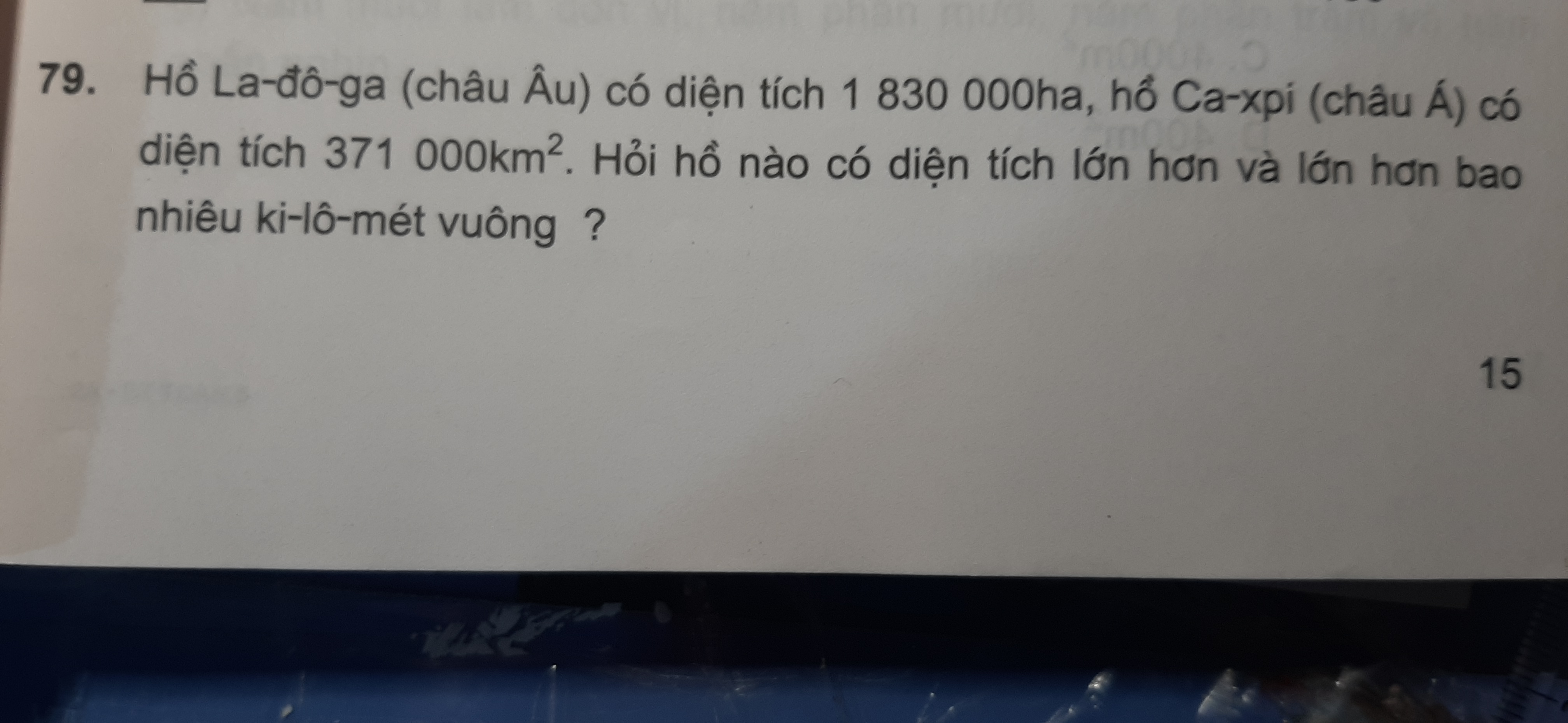Bài tập: Hỏi hồ nào có diện tích lớn hơn và lớn hơn bao nhiêu ki-lô-mét-vuông?