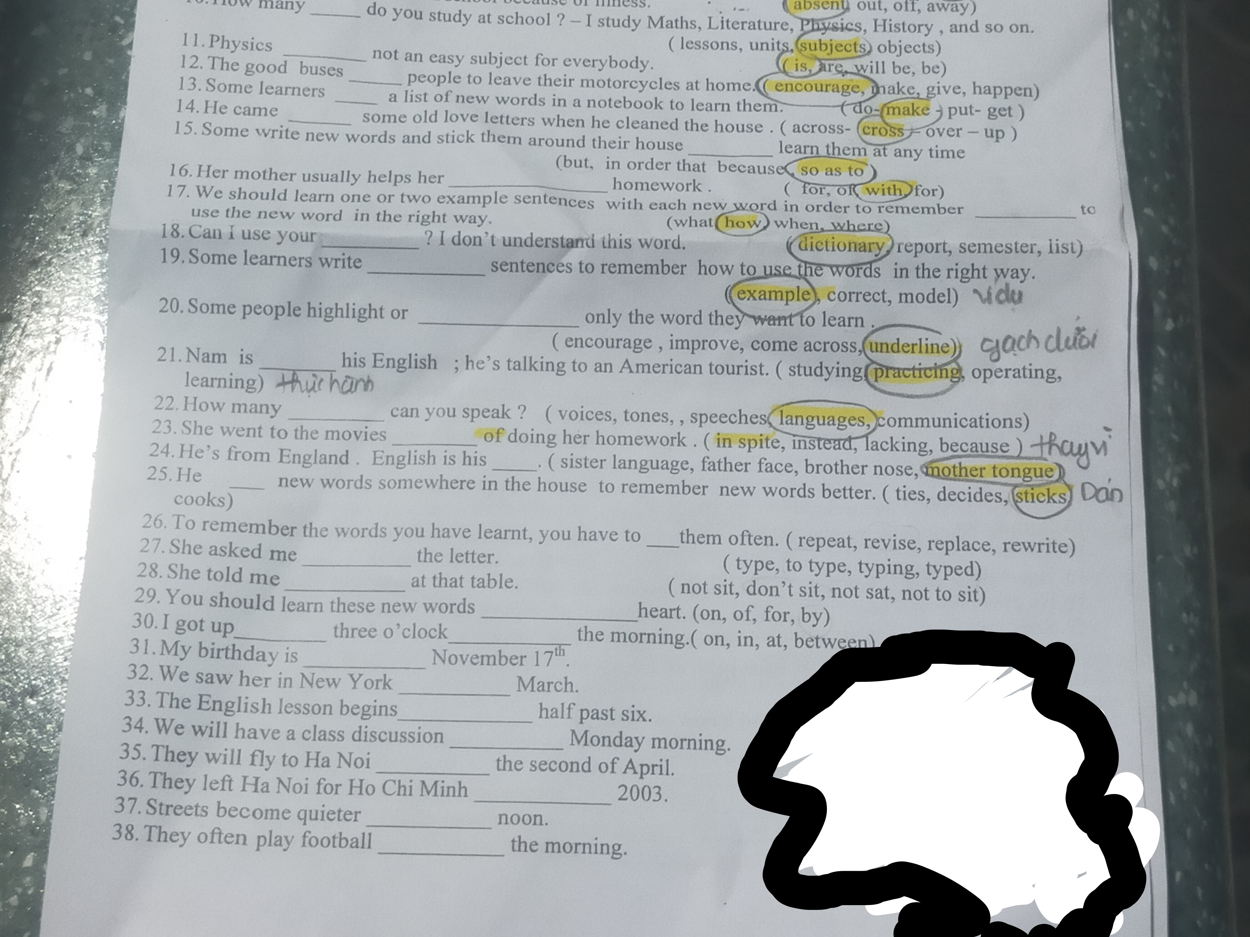 To remember the words you have learnt, you have to ...... them often (repeat, resive, replace, rewrite)