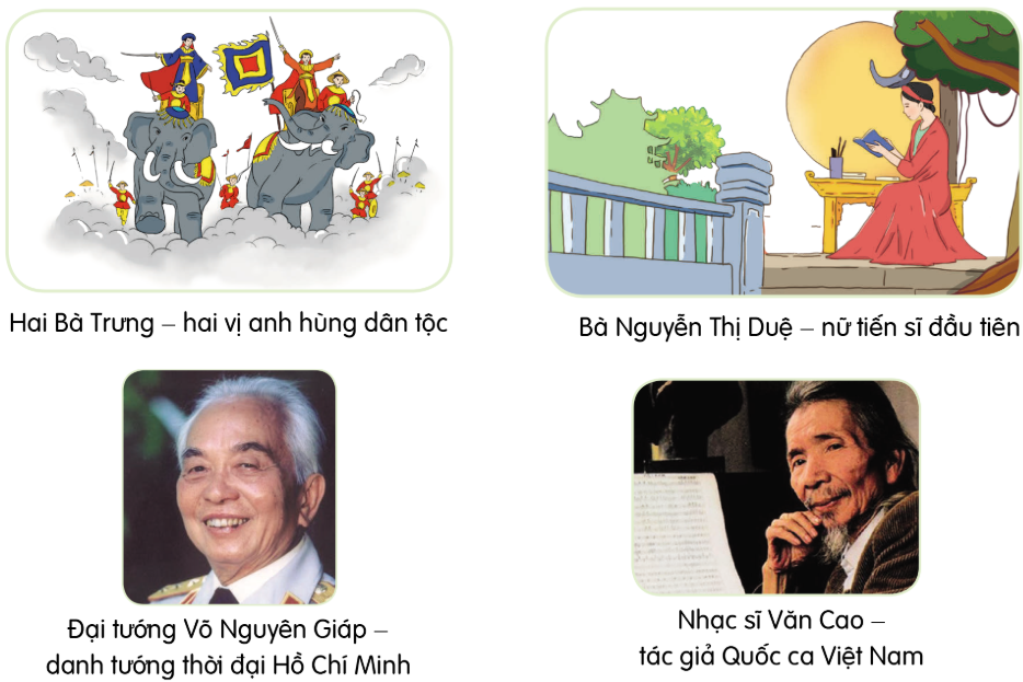 - Trưng bày, giới thiệu các đoạn văn viết về những người Việt Nam tài năng kèm theo tranh, ảnh tự sưu tầm hoặc tự vẽ.