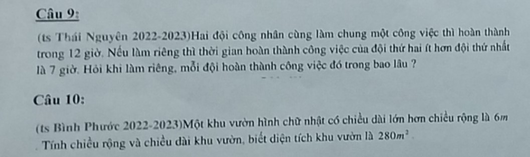Gọi x (giờ) là thời gian của đội thứ nhất làm riêng xong công việc (x > 12)