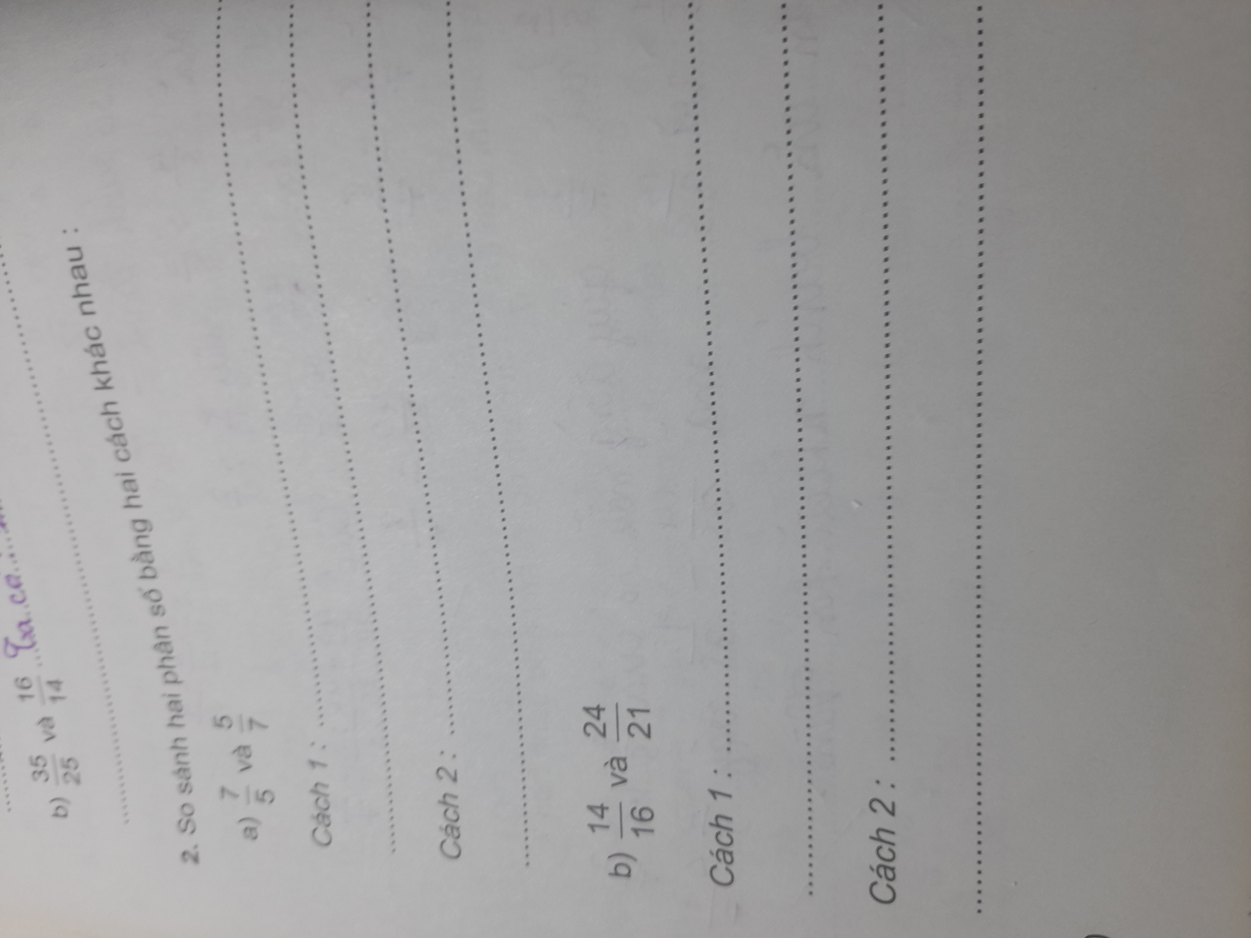 So sánh hai phân số bằng hai cách khác nhau: 7/5 và 5/7