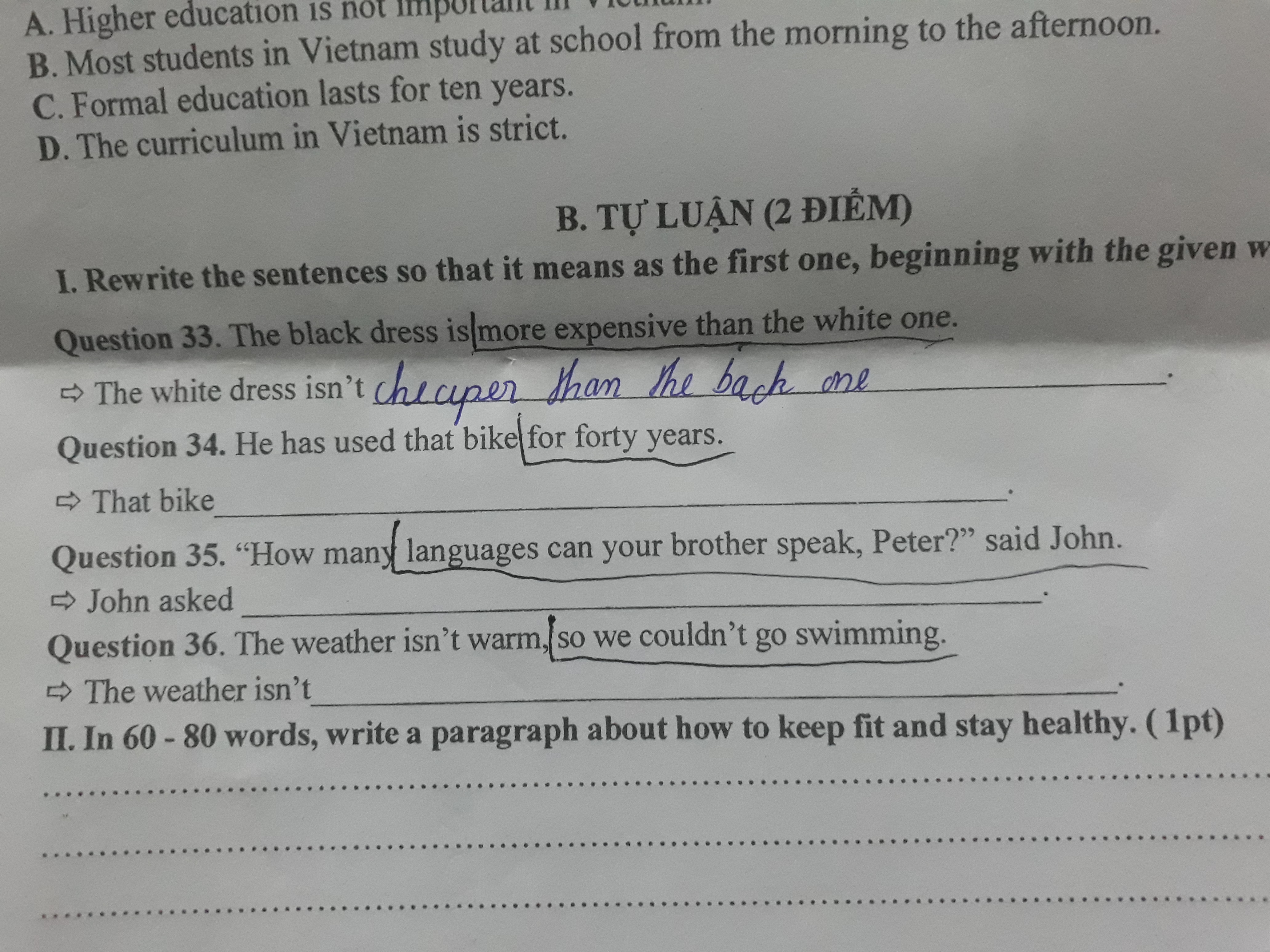 rewrite the sentences: He has used that bike for forty years